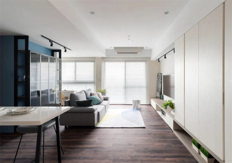 在这个北欧风格的装修案例中,设计师巧妙地将简约、自然与舒适的理念融入每一个细节之中,打造出一个既温馨又充满现代感的理想居住空间。深色地板与浅色调墙面形成鲜明对比,不仅提升了空间的层次感,还带来了一种温暖而宁静的感觉。