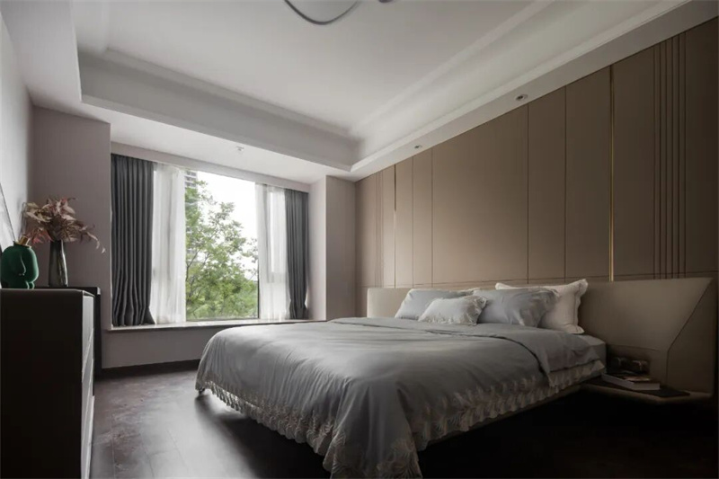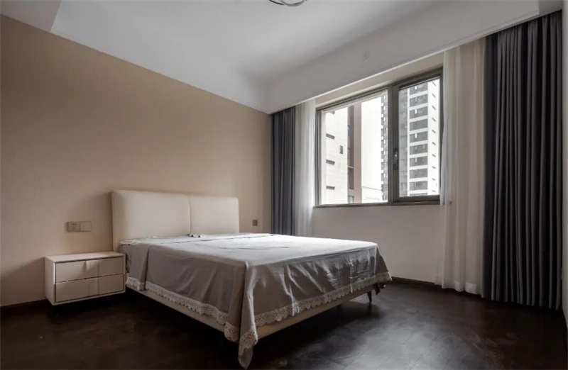 在卧室中,采用柔和而中性的色彩,如米白色、灰色以及淡蓝色。这些颜色能够为卧室营造出一种宁静而放松的氛围。同时,选择原木色地板,并搭配中性色的床品和窗帘,营造出一个宜人的睡眠空间。