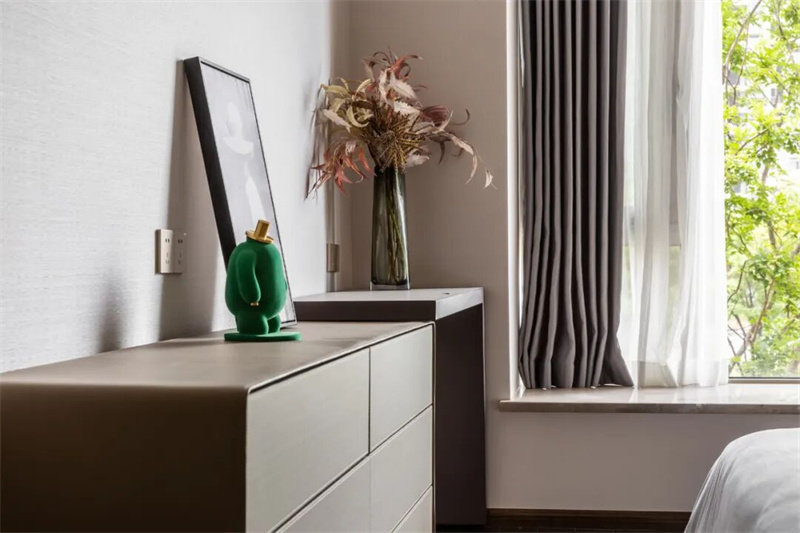 设计师在卧室中加入一些自然元素,摆放一些绿植花卉来增添一份生机和清新感。这些自然元素不仅能够为卧室带来一份自然的美感,还能让人感受到大自然的宁静和平静。
