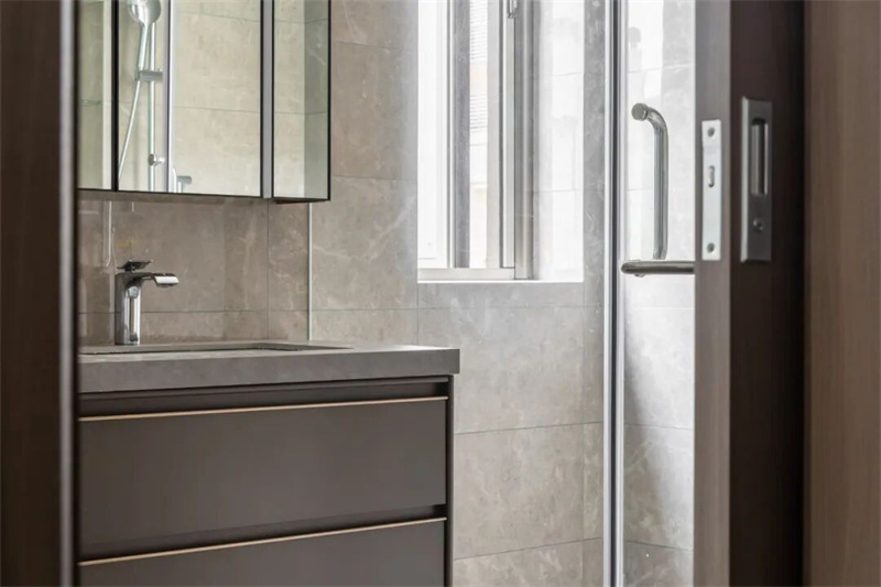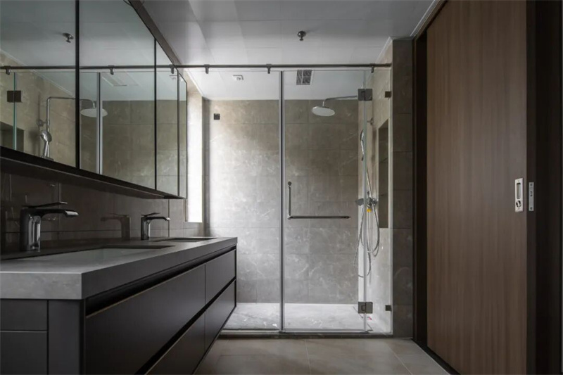 简约的洗手盆、淋浴设备,并尽量减少不必要的装饰物和陈设,这样的布置使整个卫生间看起来干净而雅致。适合的色彩、家具和照明搭配,保持空间干净整洁,打造出一个舒适、宁静且具有品质感的卫浴空间。